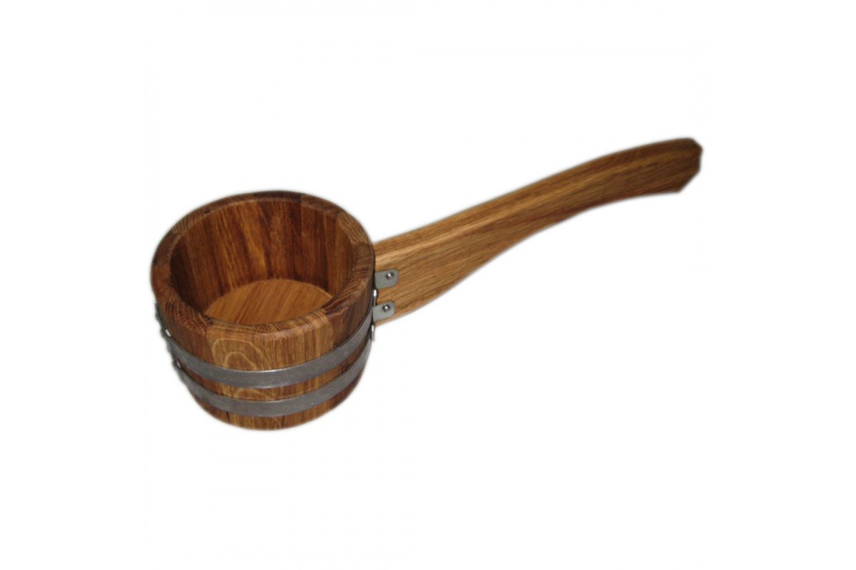 Saunová naběračka je vybavena dlouhou dřevěnou rukojetí, která se vlivem vysokých teplot nezahřívá. Výrobek je také vyztužený voděodolnými nerezovými obručemi.