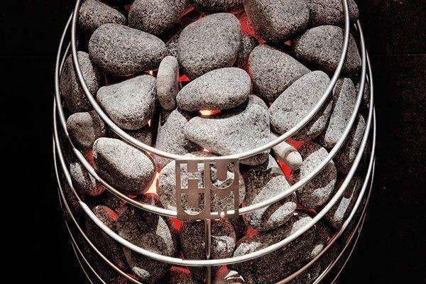 Elektrická HUUM kamna jsou vyrobena z nerezavějící oceli velice dlouhým, náročným a pečlivým způsobem. Jsou navržena tak, aby teplo v sauně zářilo především z kamenů. Kov při zahřátí vyzařuje pozitivní ionty, které nejsou pro zdraví žádným přínosem. Kameny naopak při zahřátí vyzařují velice příznivé negativní ionty, které pročistí vzduch a mají velice pozitivní vliv na zdraví člověka. Ocelový koš v HUUM kamnech je ručně a precizně vyroben tak, aby vyhřál kameny na maximum a přitom sám sálal minimum tepla.