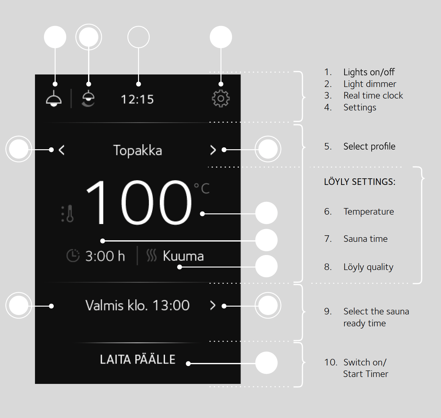 - Teplota sauny (s přesností na stupně 40-110°C)