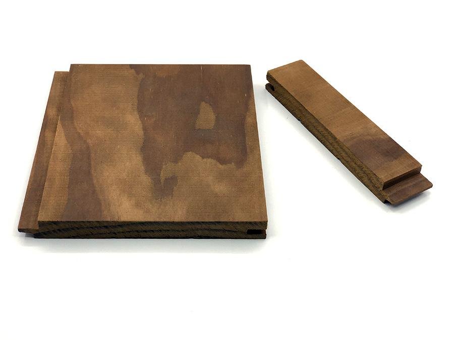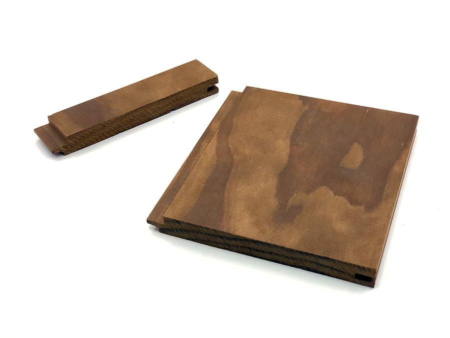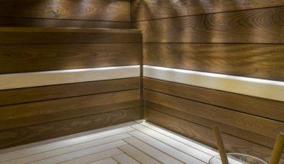 Novozélandské obložení Thermoradiata (tepelně zpracovaná borovice) – s nádherným desingem. Palubka splňuje ekologické normy a je zcela bezpečná pro použití v parních místnostech, protože neobsahuje suky a pryskyřice.