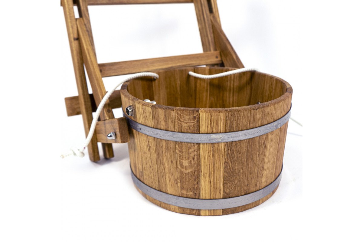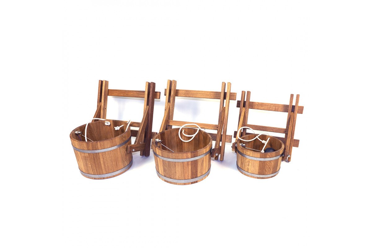 Polévací vědro do sauny je určeno k nalévání studené vody po koupelových procedurách. Voda spadající na napařeném těle pomůže k otužování, zlepšení krevního oběhu a zvýšení tonusu pokožky. Nabízíme ke koupi 23 litrový vodopád pro saunu z přírodního dubu bez použití laku a lepidla.
