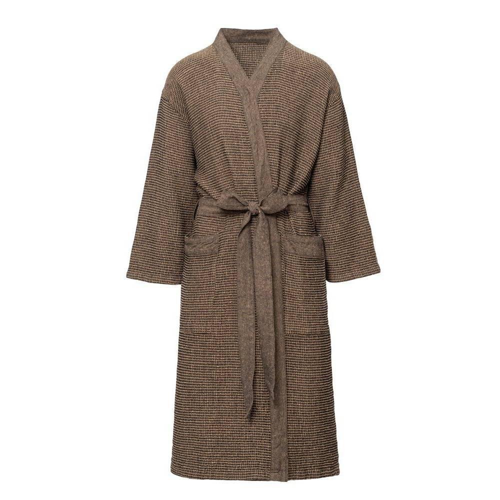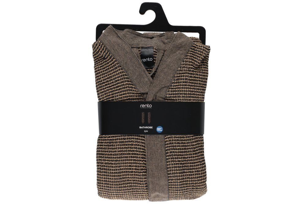 Župan do sauny Rento Kenno v hnědé barvě kombinuje styl a pohodlí. Vyrobený z ekologických materiálů, tento župan má měkkou texturu, která příjemně obepne tělo a poskytne pocit uvolnění po saunování. Elegantní chambray lemy a pásek dodávají produktu ještě větší estetiku a praktičnost.