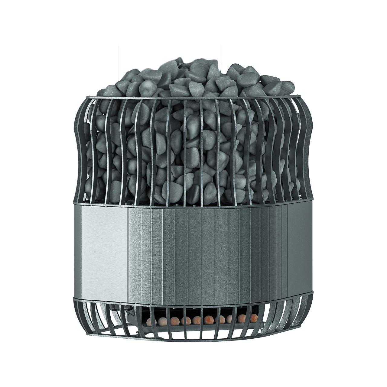Kamna vytváří klimatický systém který je rovnoměrně rozváděn po celé parní místnosti. Saunum Premium model „C“ se vyznačuje svým tvarem, který je určen k instalaci kamen do rohu sauny, čímž šetří užitný prostor místnosti. Doporučená velikost kamenů střední frakce je 5-10 cm.