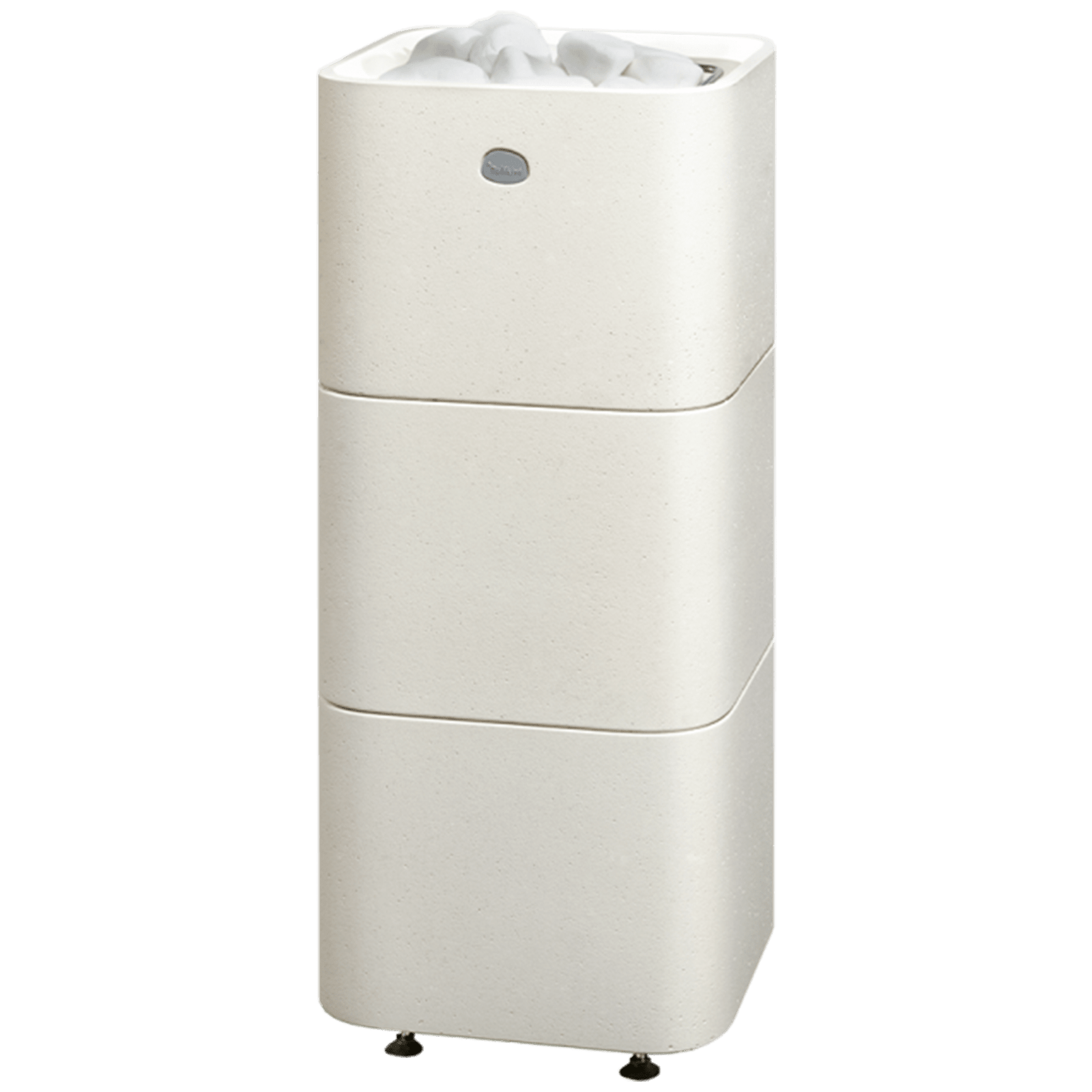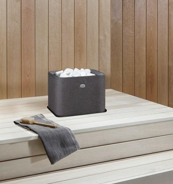 Zaoblený hranatý ohřívač Kuura má vizuálně tlumený povrch. Povrchovým materiálem je litý kámen, který se v saunových kamnech nikdy předtím nepoužíval. Barva a design ohřívače dokonale ladí s tmavým i světlým interiérem sauny. Velká kamenná přihrádka poskytuje dlouhé, vlhké a měkké teplo. Ohřívač lze připojit k automatizačnímu systému budovy KNX.