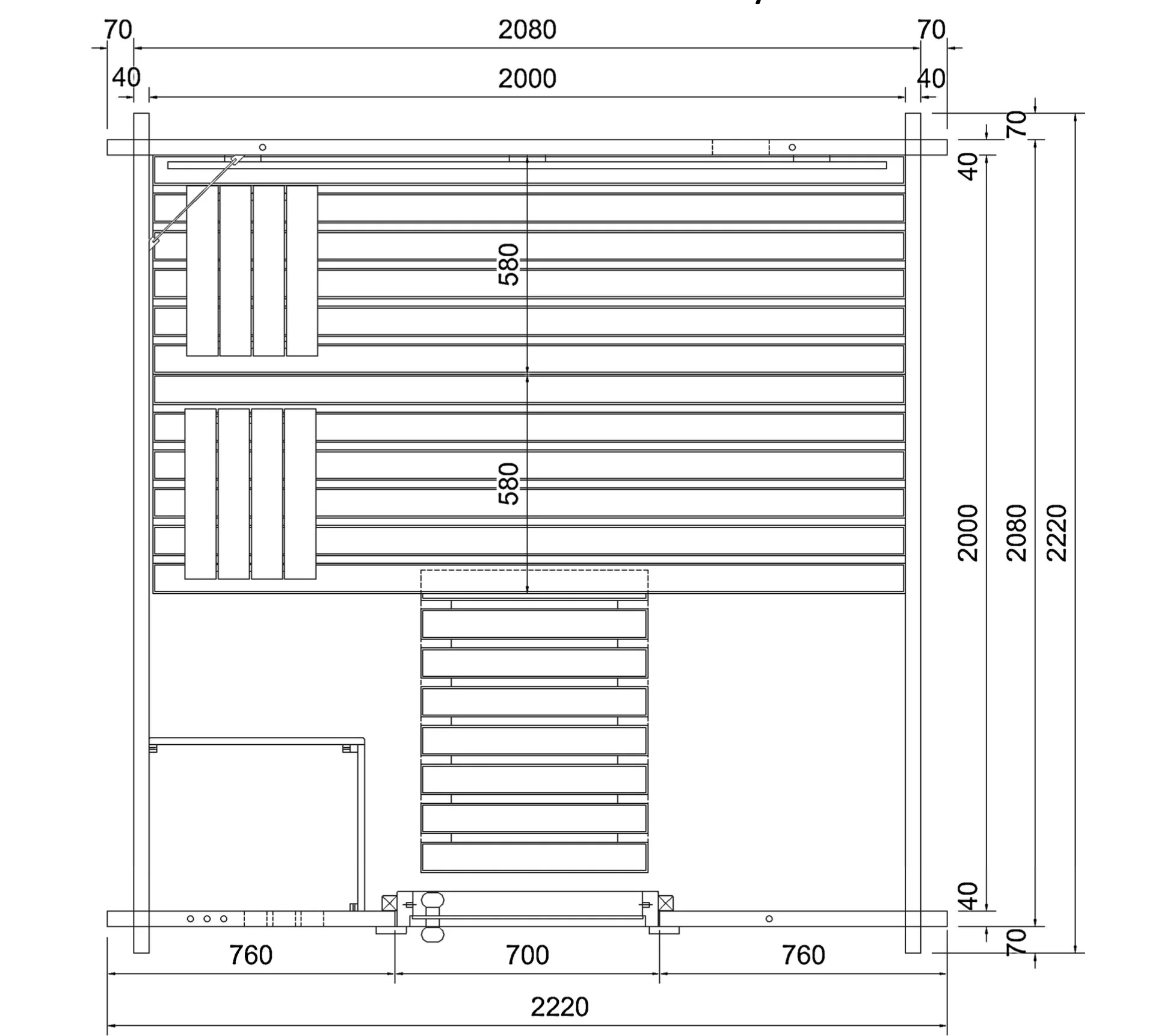 Vnitřní rozměry sauny: 200 × 200 × 201 cm