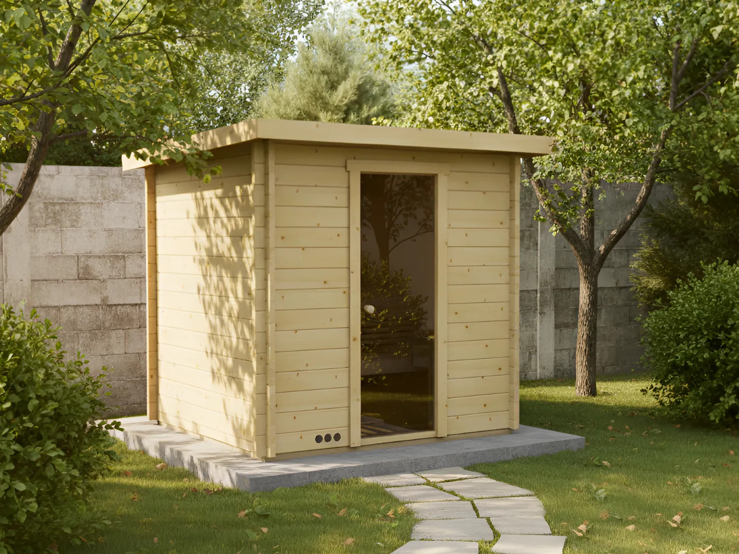 Tento saunový domek z kvalitního severského smrku je ideálním řešením pro milovníky tradičního saunování. Konstrukce o tloušťce stěny 40 mm využívá vertikální spoje s dvojitou perodrážkou, které jsou dodatečně stabilizovány závitovými tyčemi, což zajišťuje dlouhou životnost a tvarovou stálost domku.