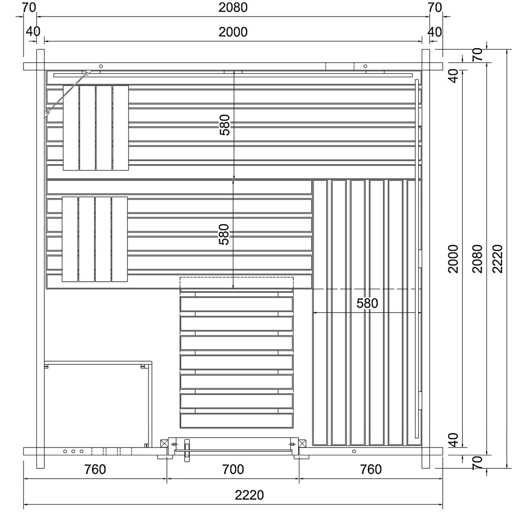 Vnitřní rozměry sauny: 200 × 200 × 192 cm