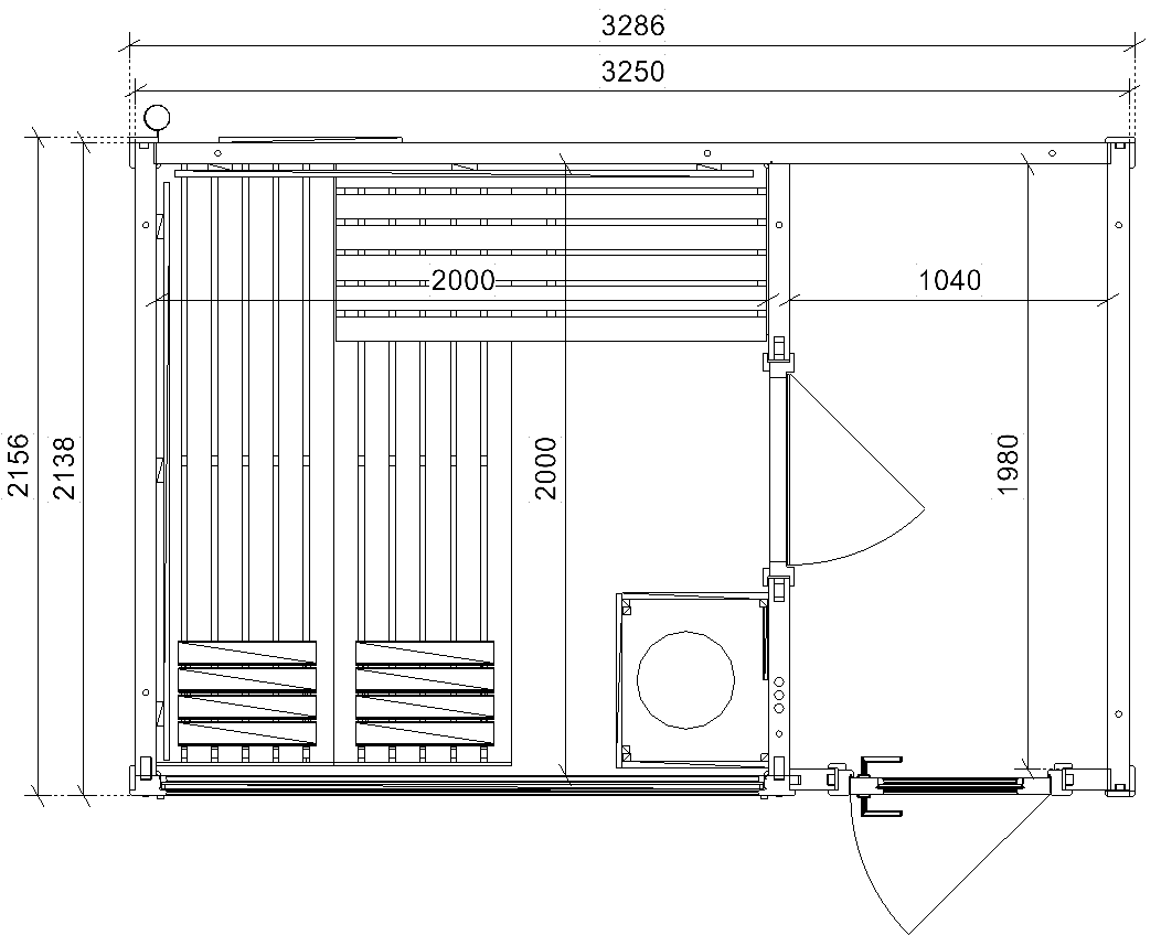 Vnitřní rozměry sauny: 200 × 200 cm