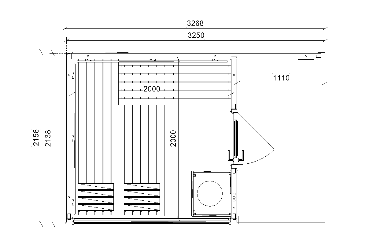 Vnitřní rozměry sauny: 200 × 200 cm